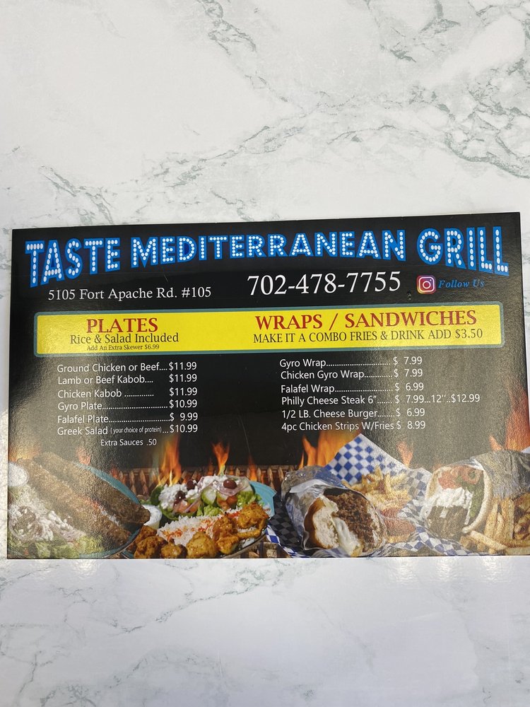 Welcome to Taste Mediterranean Grill, your go-to spot for delightful Middle Eastern and Mediterranean cuisine in Las Vegas! Nestled at 5105 S Fort Apache Rd, this halal eatery promises a culinary adventure that will enliven your palate.